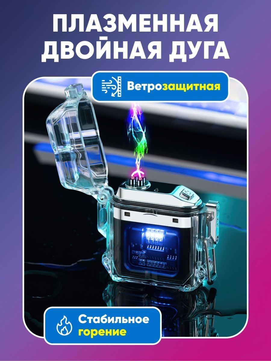 Импульсная зажигалка имеет сенсорную панель где отображается уровень заряда, также в неё встроен светодиодный фонарь. Плазменная зажигалка пригодится как в быту на кухне, так она станет полезным девайсом на природе в походе путешествии или на рыбалке. Электродуговое огниво с молниями станет надёжным спутником как дома так и в пути.